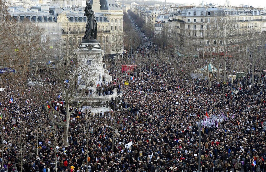 据悉,在此次周日大游行之前,连日来全法各地已经不断有人自发或响应号召走上街头,哀悼恐怖袭击中的遇难者,参加各种集会游行活动的总人数已经达到140万。
